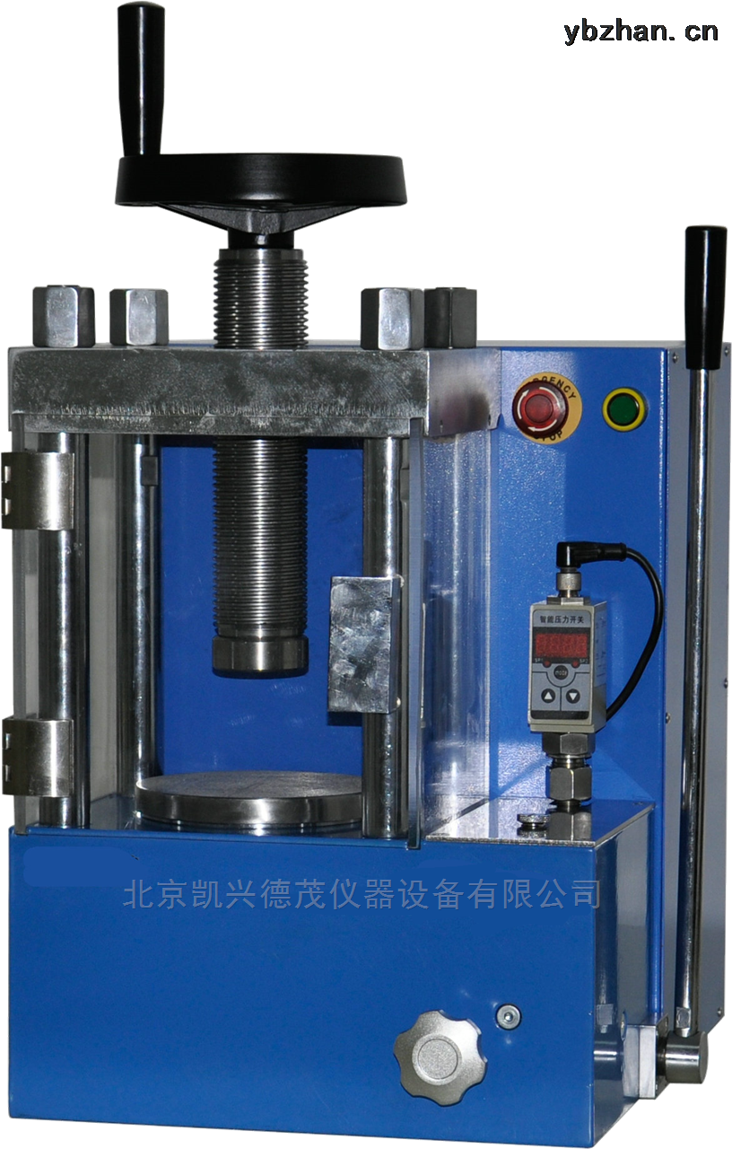 手动粉末压片机(小型油压机)吨位大、体积小适用于较大截面积的粉模压片,或需要较大压力的场合,配上不同形状 的模具,可以压出不同形状不同尺寸的片子。如:圆形、方形、长形、环形、六角形、平板 形,配上电加热模具(250℃)/单道温控器,可以在加热过程中压片。